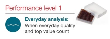 | When to Use | Cost-optimized products suitable for all HPLC/UHPLC and GC instrument types and tested for everyday analyses | High-throughput products for high-quality GC and HPLC/UHPLC data with an uninterrupted workflow | Lowest levels of extractable metals and leachables for consistent and reproducible sensitivity and selectivity, reliable method performance, and sample security and integrity; packaged in a clean environment |