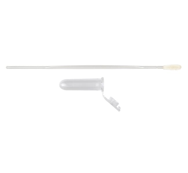 The tip of the applicator is coated with short Nylon fibers that are arranged in a perpendicular fashion. This perpendicular arrangement results from a process called flocking, where the fibers are sprayed onto the tip of the swab while it is held in an electrostatic field. This process creates a highly absorbent, thin layer with an open structure. The swab is supplied in a peel-pouch with a 2-mL cuvette and is suitable for reference and evidence collection applications.