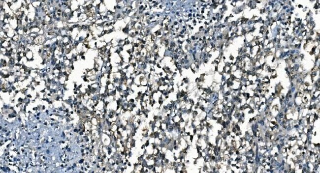 Adding 0.2 mL of distilled water will yield a concentration of 500 μg/mL. Positive Control - WB: human K562 whole cell, human HL-60 whole cell, human HEK293 whole cell. IHC: human ovarian cancer tissue, human breast cancer tissue, human esophageal squamous carcinoma tissue, human pancreatic cancer tissue, human prostate cancer tissue, rat testis tissue, mouse thymus tissue. Flow: 293T cell. Store at -20°C for one year from date of receipt. After reconstitution, at 4°C for one month. It can also be aliquotted and stored frozen at -20°C for six months. Avoid repeated freeze-thaw cycles.