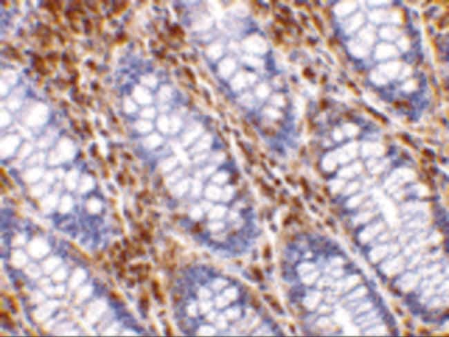 A suggested positive control is human colon tissue lysate. PA5-20064 can be used with blocking peptide PEP-0183.