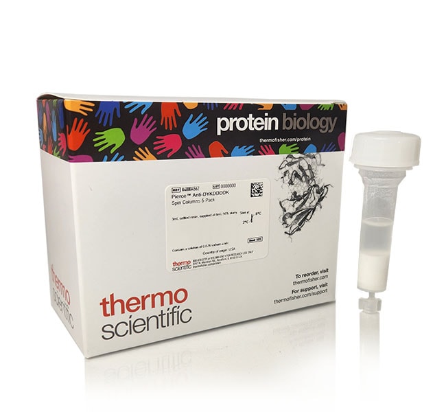 Pierce Anti-DYKDDDDK Spin Columns provide a fast, convenient method for purification of DYKDDDDK-tagged proteins expressed in in vitro protein expression systems, bacteria, yeast, and mammalian cells.