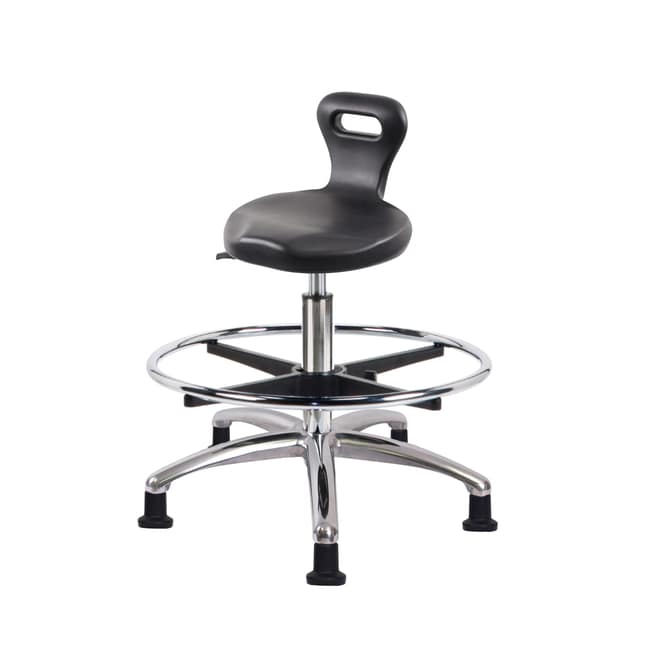 Fisherbrand™ Polyurethane ESD Serpent Stool Chrome Medium Bench Height with Chrome Foot Ring and ESD Stationary Glides