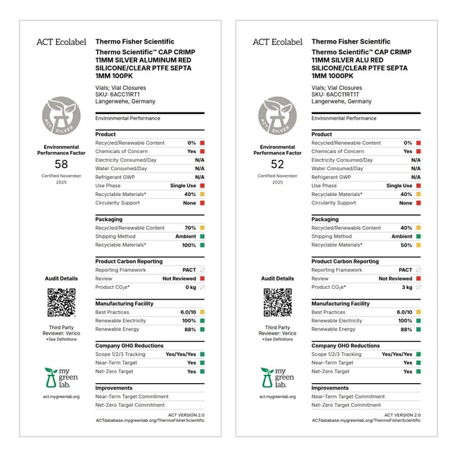 Thermo Scientific™ SureSTART™ Silver Aluminum 11 mm Crimp Caps